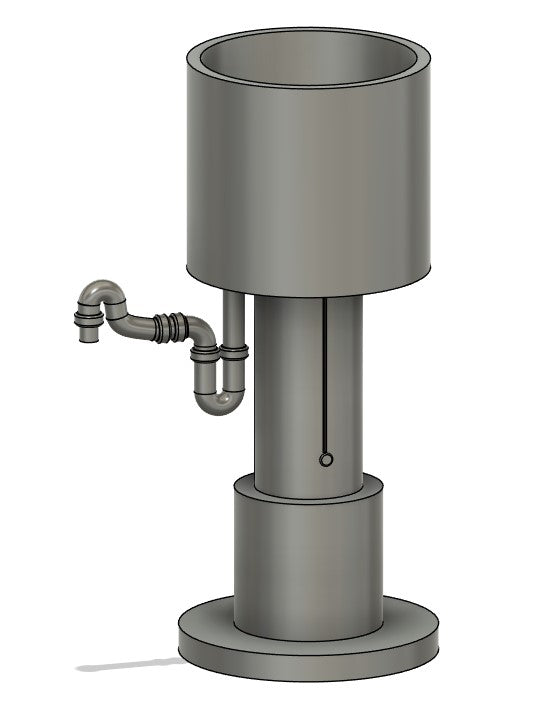 This product contains the 3D Files to replicate the only water tower used in season 1 and reused through various other classic series seasons. The files include the full tower, or the parts separated for easier printing. Minor details like ladders, chain etc may be required. The hose is included fully, or with a nub end to allow attachment of a flexible hose. Please note that the included parts list is for Gauge 1 only.